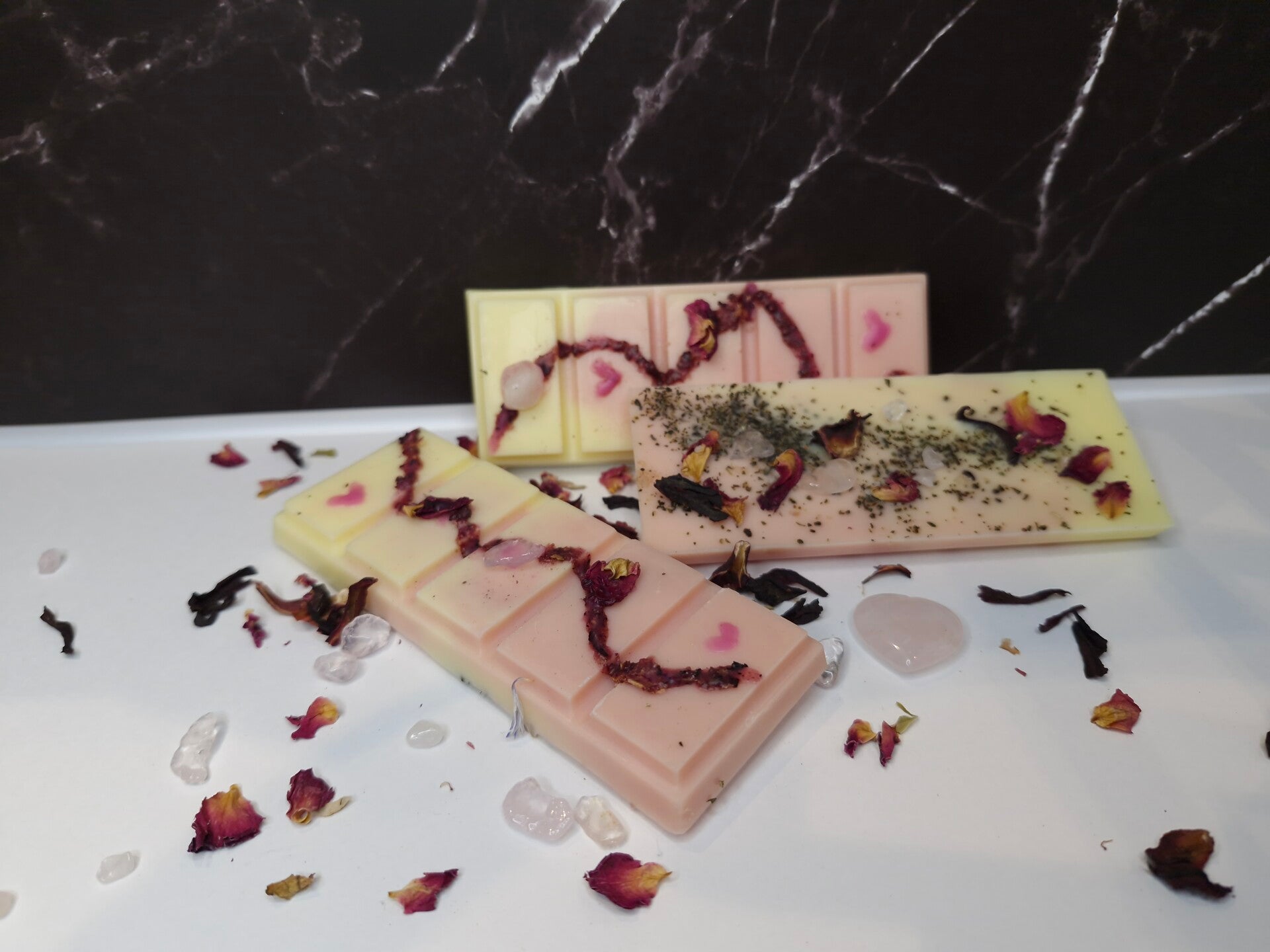 Each candle or wax melt in our “Goddess” collection carries its own unique magic, thanks to the carefully selected dried herbs and flowers placed within it.
