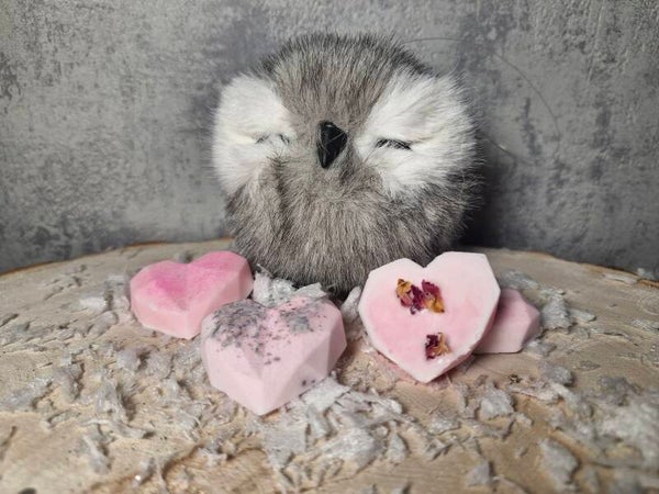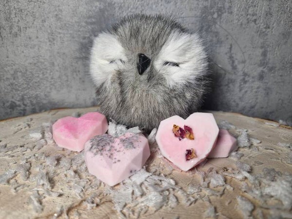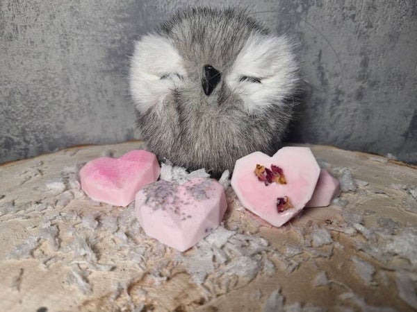 Self-Love Melt – Pink hearts infused with rose and jasmine, designed to nurture self-love and emotional well-being. “Nurture your heart, embrace your glow.”