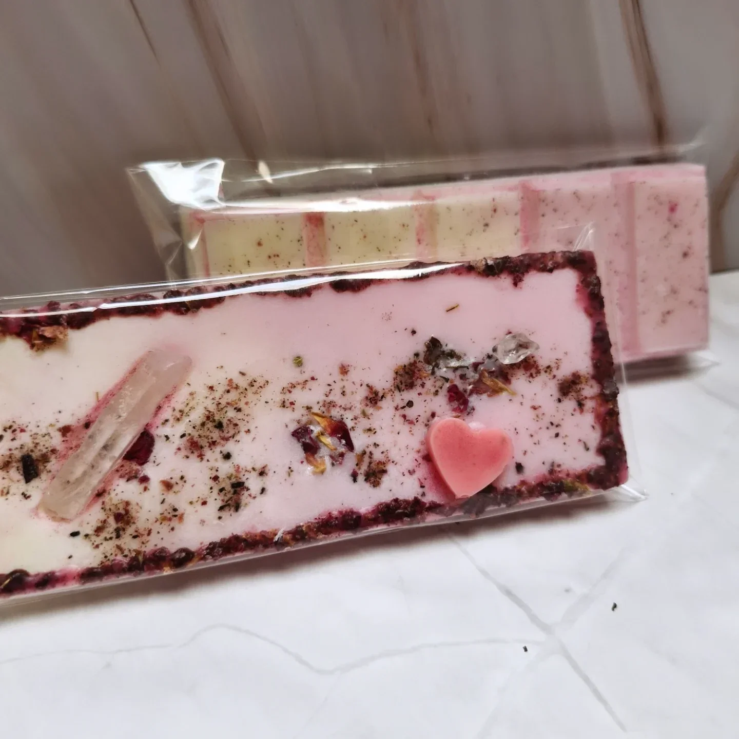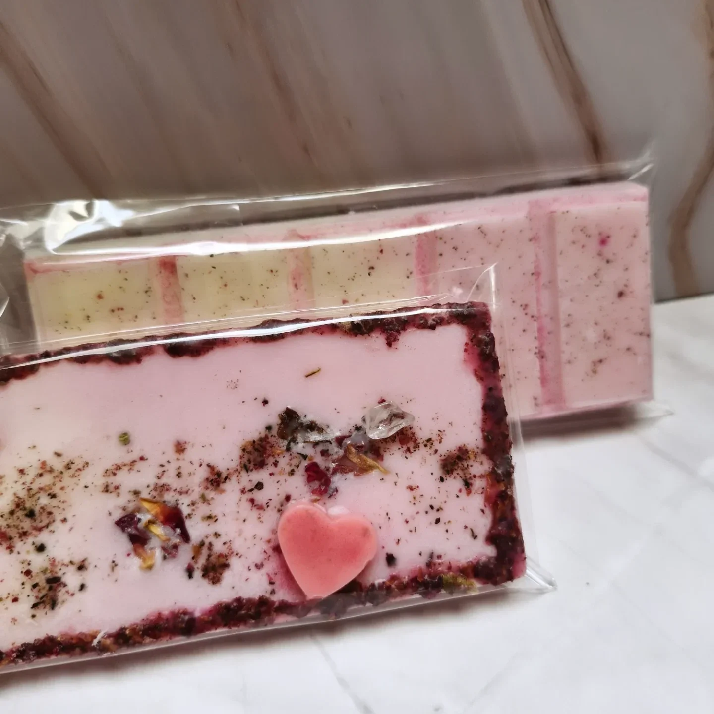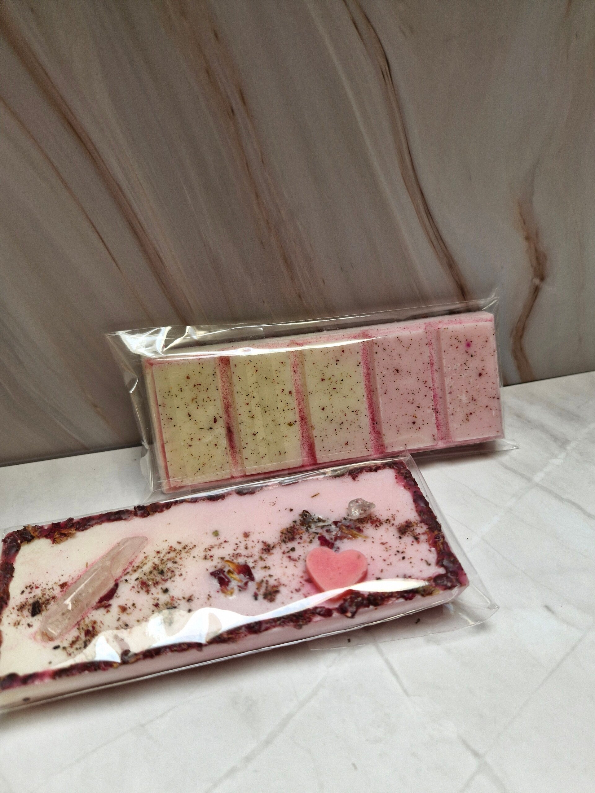 These wax melts are a sweet, blushing offering to Aphrodite, wrapped like a little secret waiting to be unsealed. Soft pink hues, delicate botanicals, and a tiny heart resting at the center… it feels less like wax, more like a keepsake from a love story.